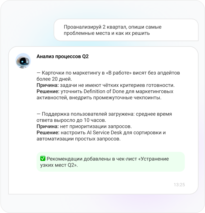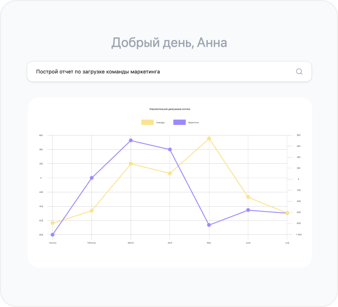 ИИ мгновенно сформирует понятный отчёт по любым данным компании: от выручки до загрузки команды