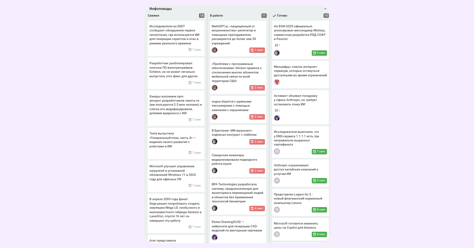 Каждый день команда информационной службы Хабра отслеживает десятки IT-инфоповодов, превращая их в новости, переводы и лонгриды. За всем этим стоит четкая координация — без нее легко потерять тему, пропустить релиз или дважды написать одно и то же.