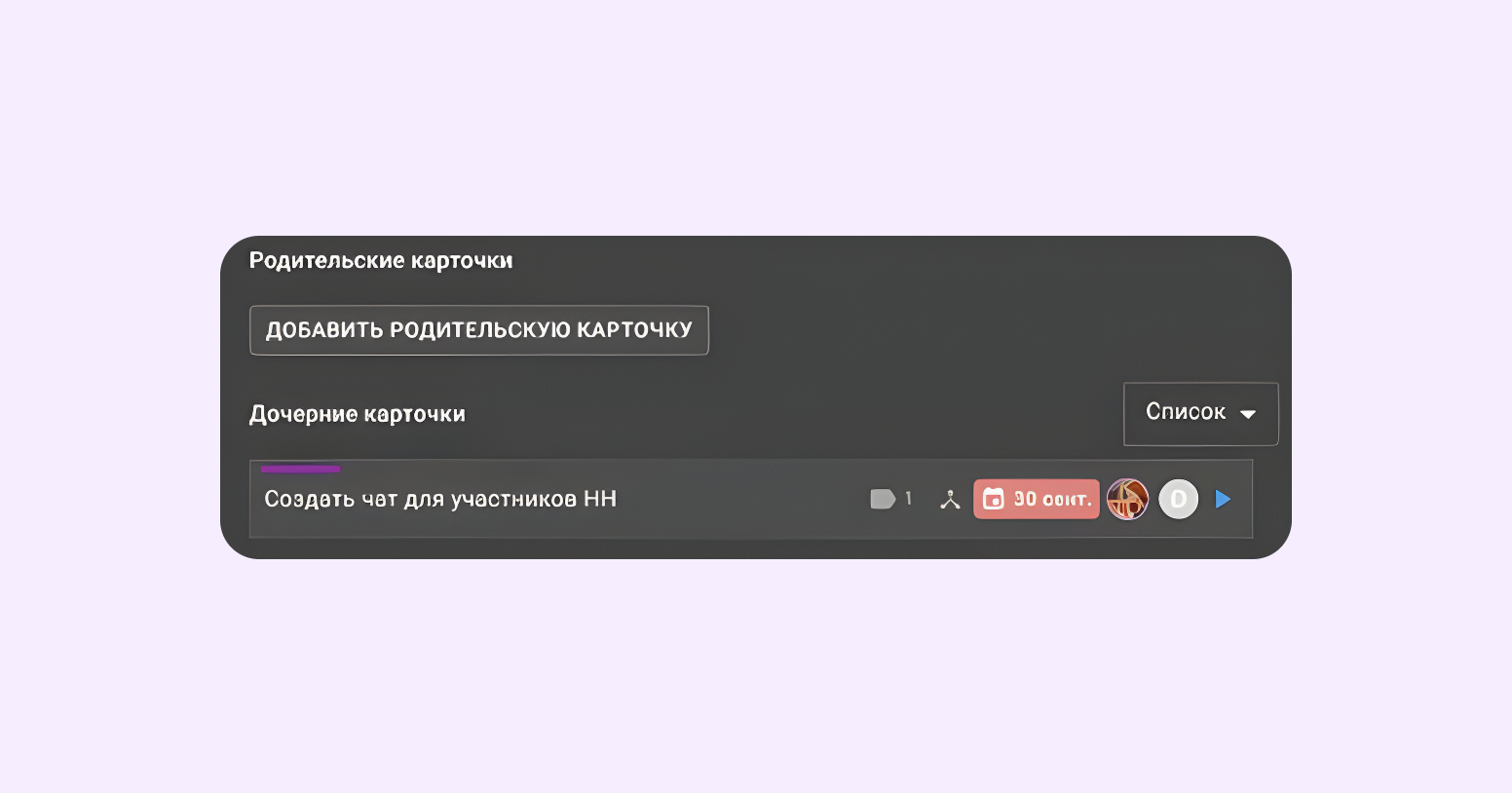 Используем дочерние карточки. Большие задачи мы декомпозируем с помощью чек-листов, но если они не подходят, то создаем отдельные карточки, с которыми работаем параллельно.