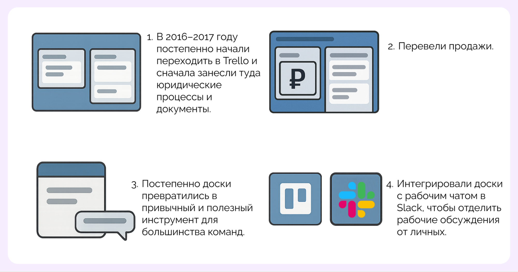 «Корпорация роботов» пережила уход Trello без провала в хаос: за счет быстрой миграции, разделения работы на пространства по направлениям, настройки доступов и привычки фиксировать договоренности. В итоге руководству стало проще видеть бизнес целиком, командам — держать задачи и сроки в одном поле, а точкам роста — быстрее становиться заметными.