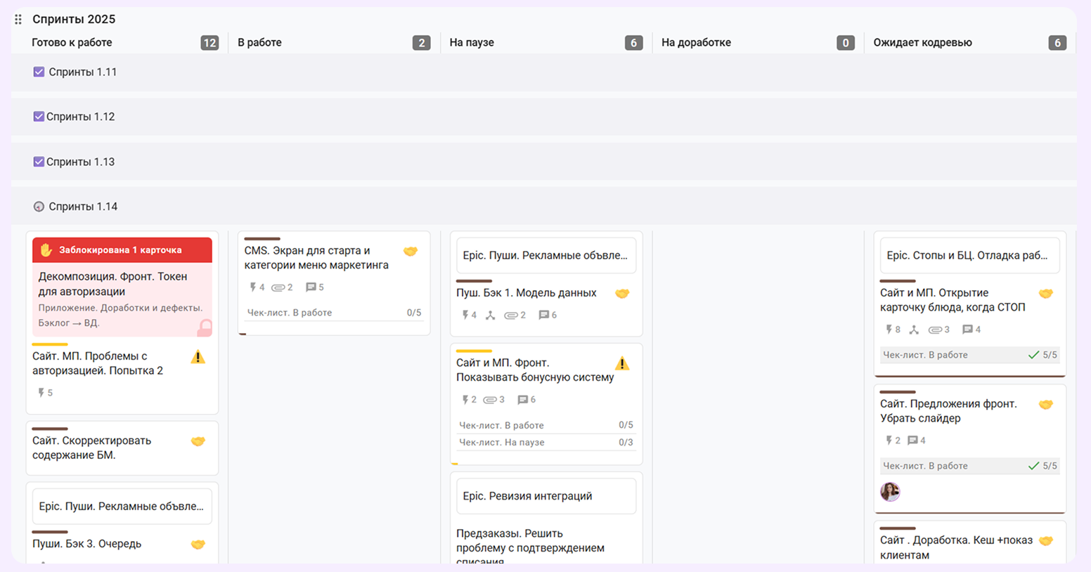 Организовали разработку по спринтам: дорожки и чек-листы
