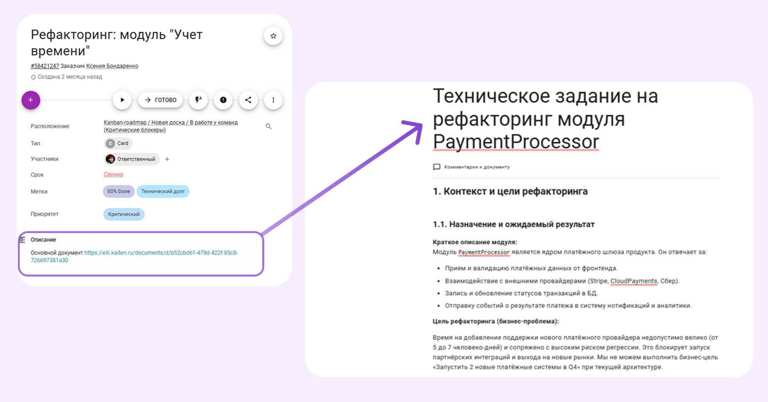 Так появляется двусторонняя связь: из документа — в задачи, из задачи — в стратегический контекст.