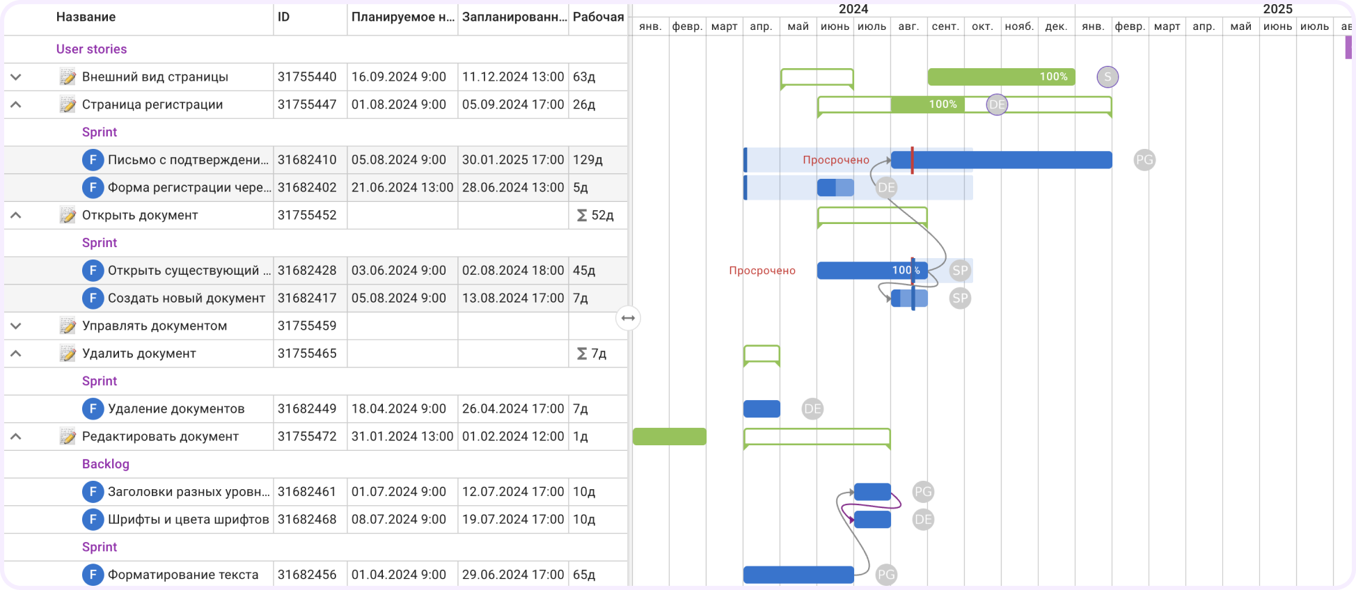 | Дочерние и родительские связи между задачами | ✅ | ✅ |