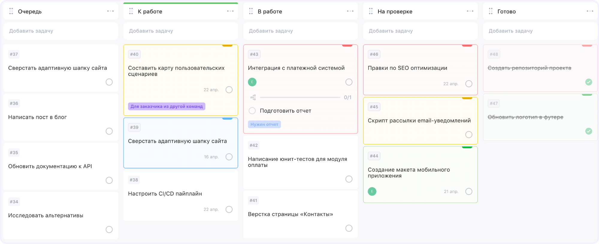 | Обозначение карточек, которые долго находятся на 1 этапе | ✅ | ❌ |