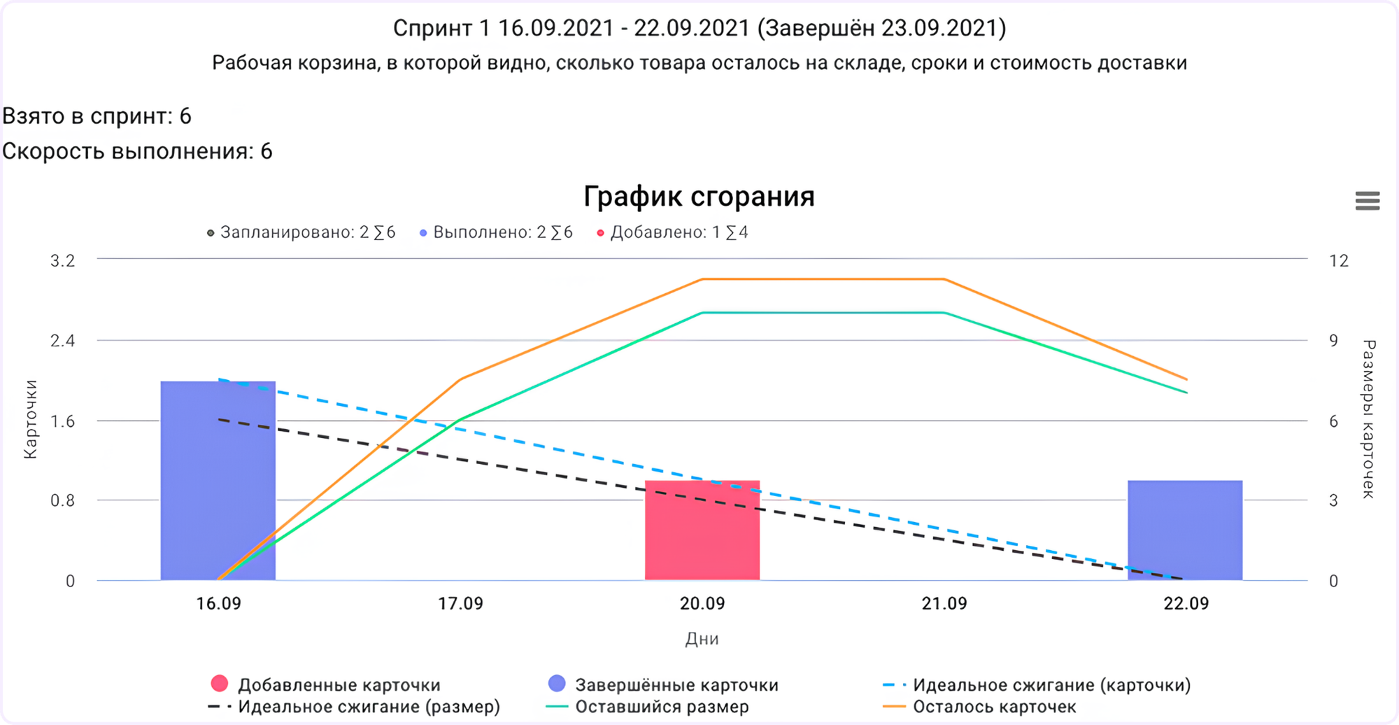 | График сгорания задач во время спринта | ✅ | ❌ |