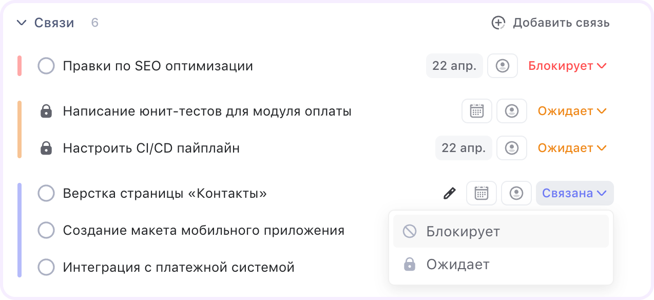 В WEEEK заблокировать задачу можно только другой задачей — просто так поставить блокировку нельзя. При этом увидеть блокировки можно исключительно внутри карточки, на канбан-доске они не отображаются.