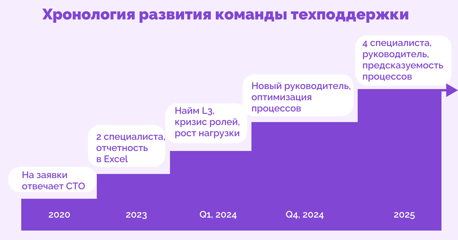 Это был период, когда команда справлялась с количеством заявок, но внутренняя организация работы требовала серьезных изменений, чтобы справиться с ростом компании.