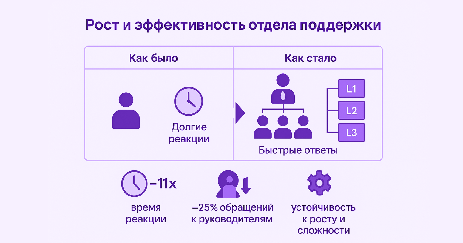 Также отдел адаптировался к будущему росту компании и постепенному увеличению количества заявок от пользователей.