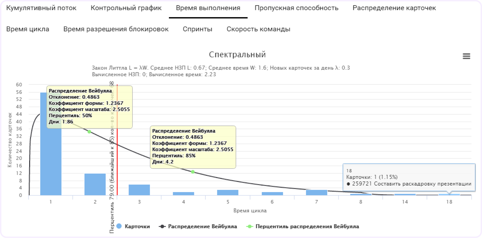 Сверка показала, что Кайтен считает то же самое, что и ручные отчеты в Excel. Но с одной важной разницей: в Кайтене все графики и метрики уже были под капотом — не нужно было переносить данные, составлять списки задач с датами начала и завершения, самостоятельно строить диаграммы. То, на что в Excel уходило время, в Кайтене работало автоматически.