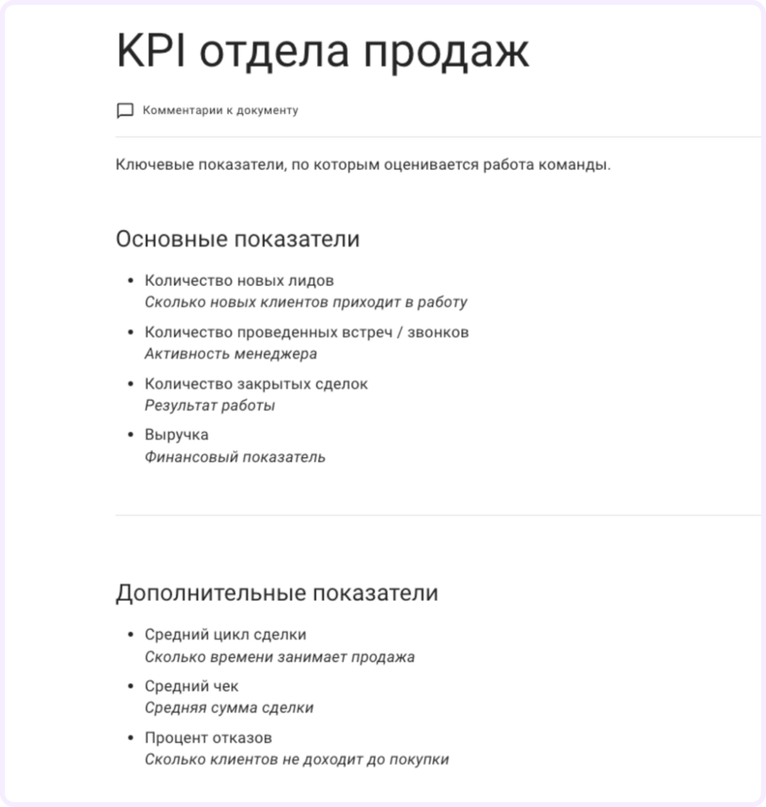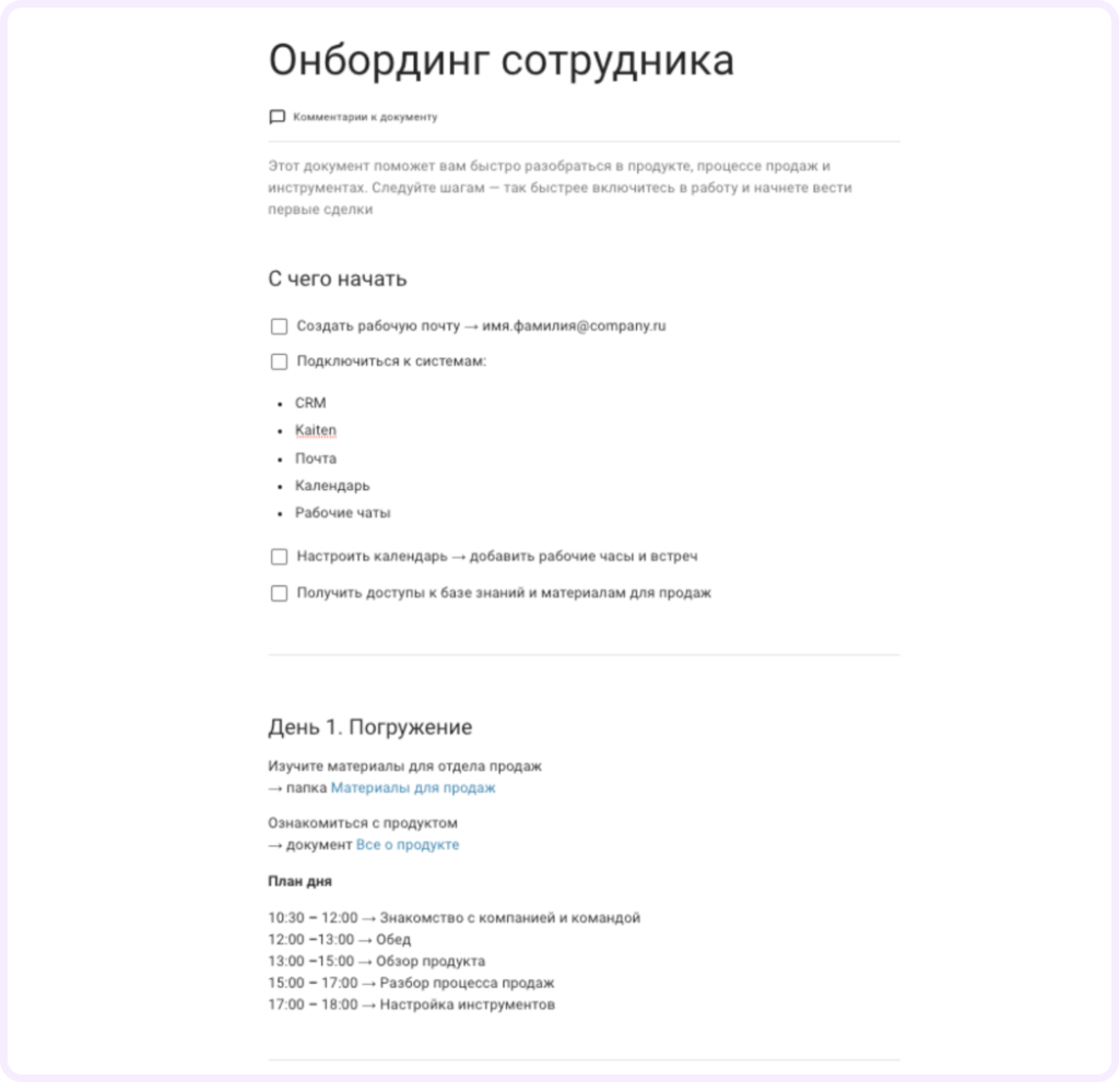 Чтобы документы действительно помогали в работе, они должны отражать реальные задачи менеджеров: от онбординга до закрытия сделки.