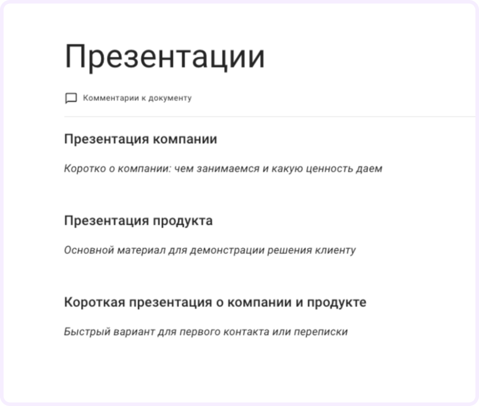 Чтобы избежать этого, компании формируют единый набор документов для отдела продаж. Он помогает зафиксировать лучшие практики команды и делает работу менеджеров более структурированной.