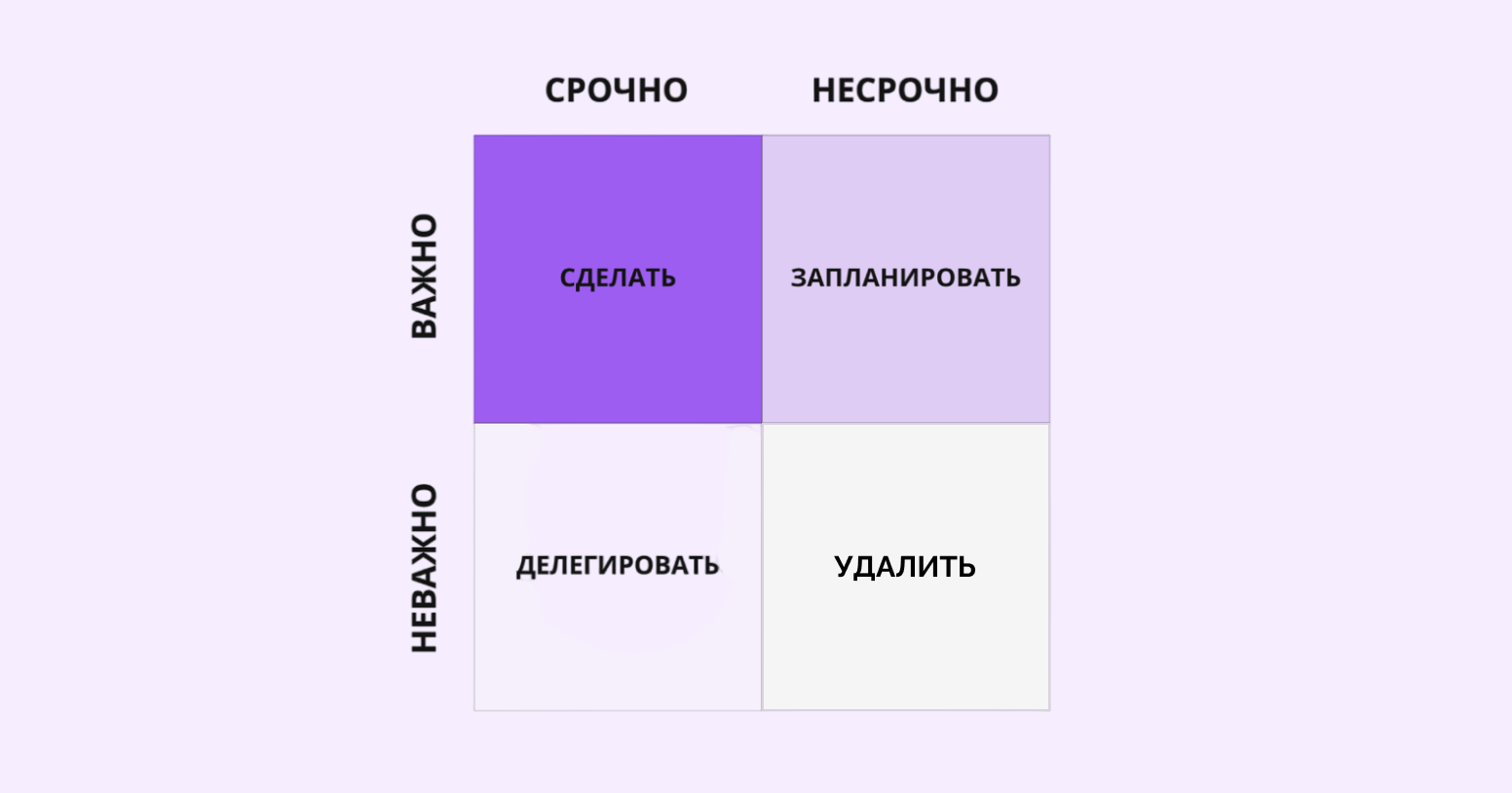 - Матрица Эйзенхауэра — помогает приоритизировать инициативы по важности и срочности. Например: если запуск нового продукта важен для достижения цели по выручке, но его реализация потребует месяцев работы, его ставим в «важные, но не срочные» и планируем пошагово.