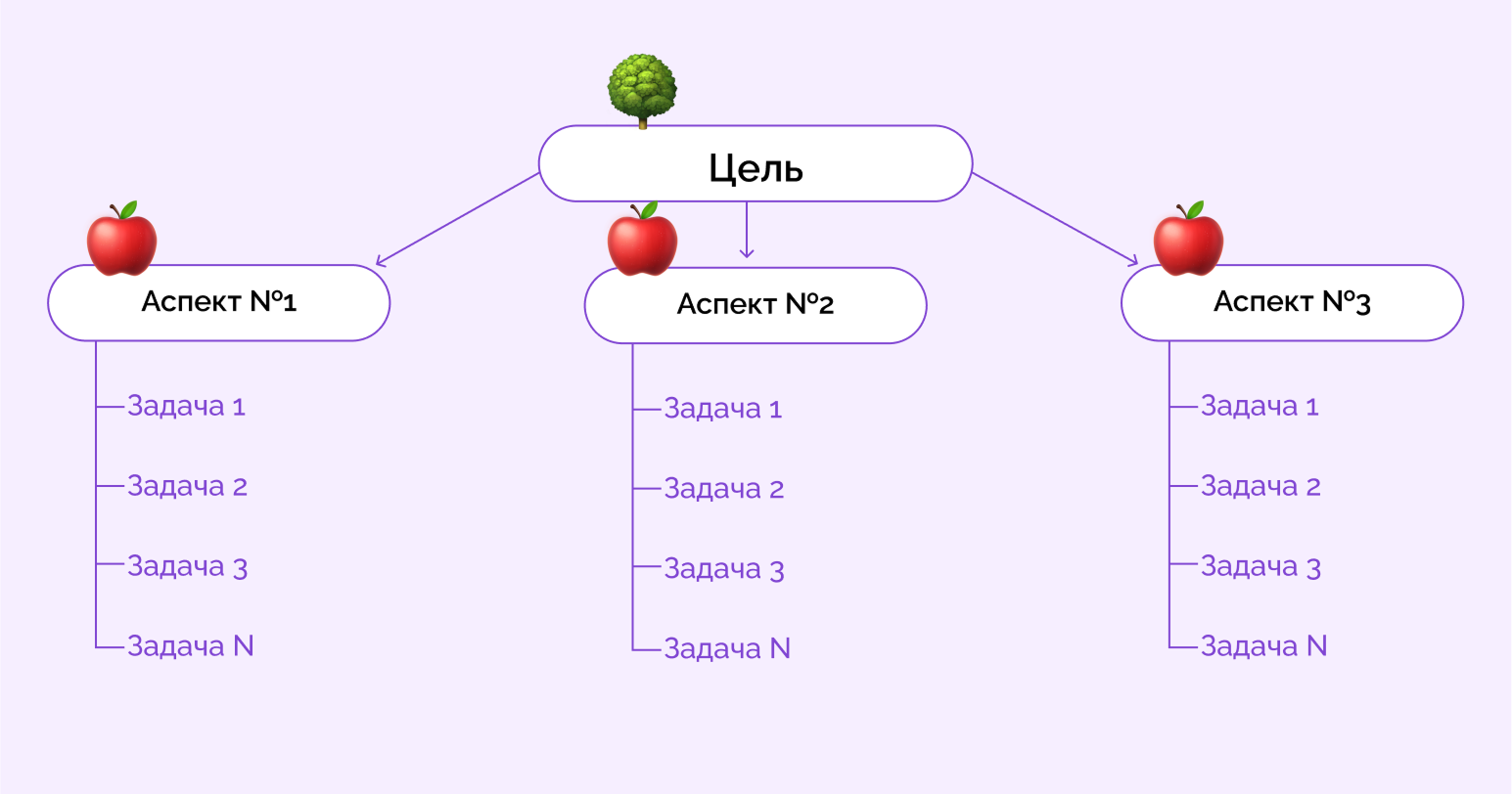 - Дерево целей — визуальная карта целей и подцелей, которая показывает, как каждая подцель поддерживает стратегическую цель.