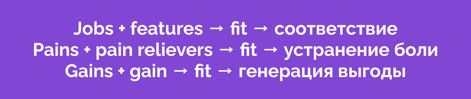 Этот фреймворк помогает визуализировать и синхронизировать соответствие (Fit) между тем, что вы предлагаете (продукты и услуги), и тем, что нужно вашему клиенту (профилем потребителя).