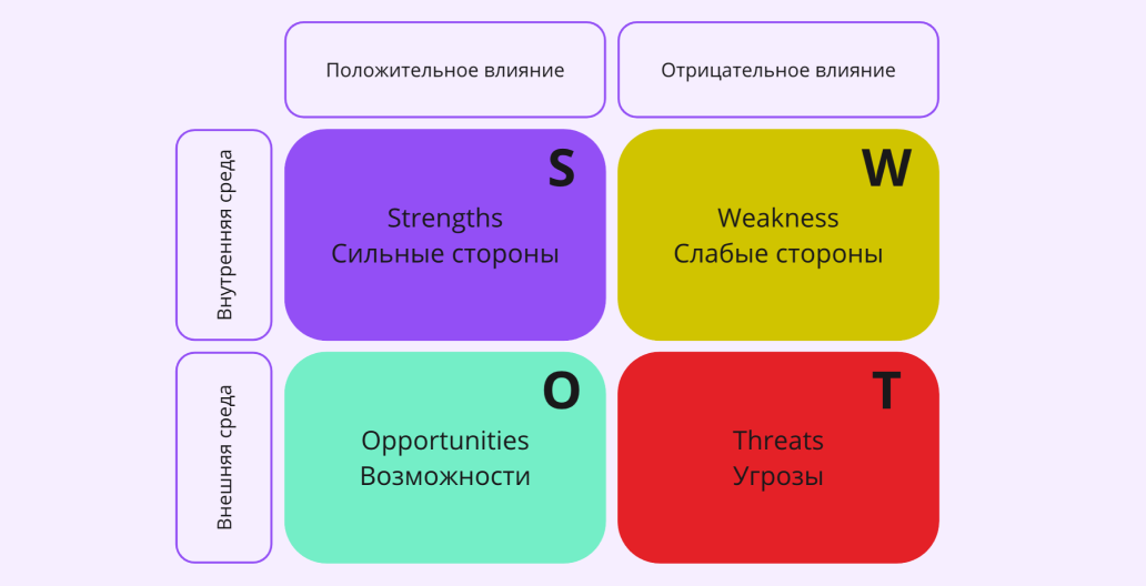 SWOT-анализ. Инструмент для оценки сильных сторон (Strengths), слабых сторон (Weaknesses), возможностей (Opportunities) и угроз (Threats). Помогает увидеть полную картину и принимать стратегические решения.