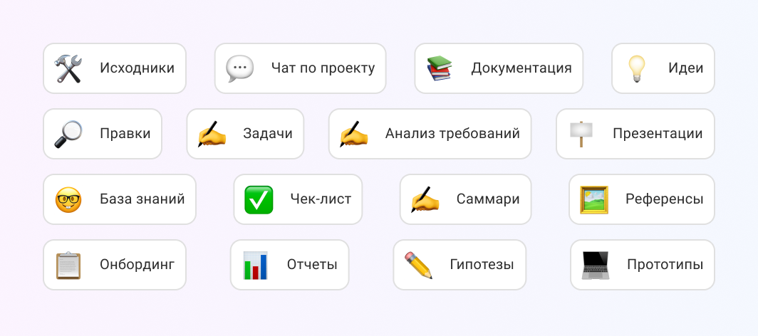 Требования, роадмапы, user stories, результаты исследований — всё рядом с задачами команды