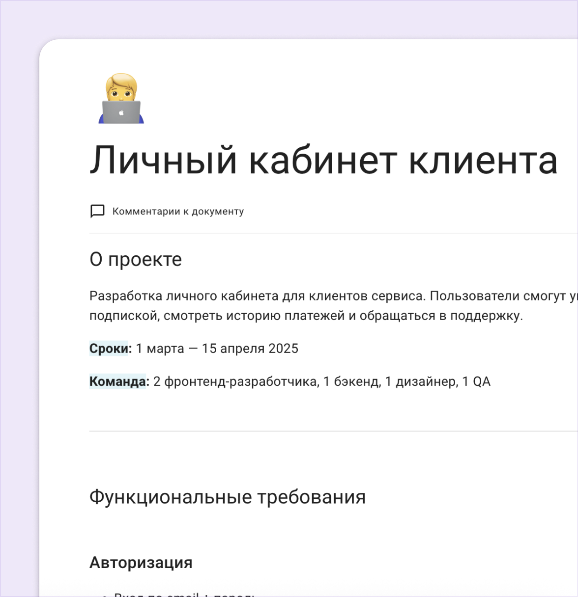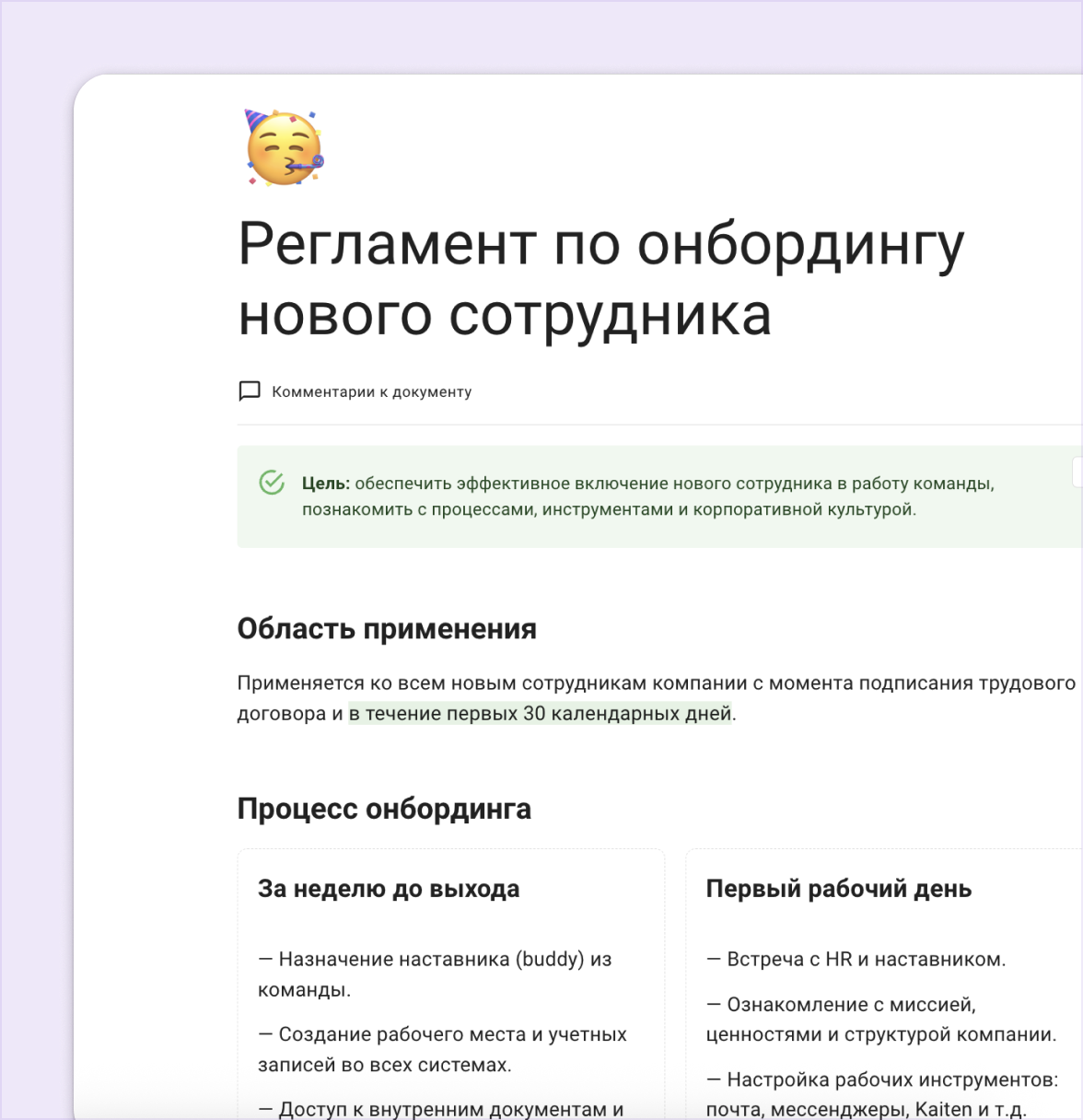 Документы Kaiten — это часть системы, а не отдельный продукт. Не нужно покупать дополнительную подписку, настраивать интеграцию или переключаться между сервисами. Просто создайте документ и начните работать.