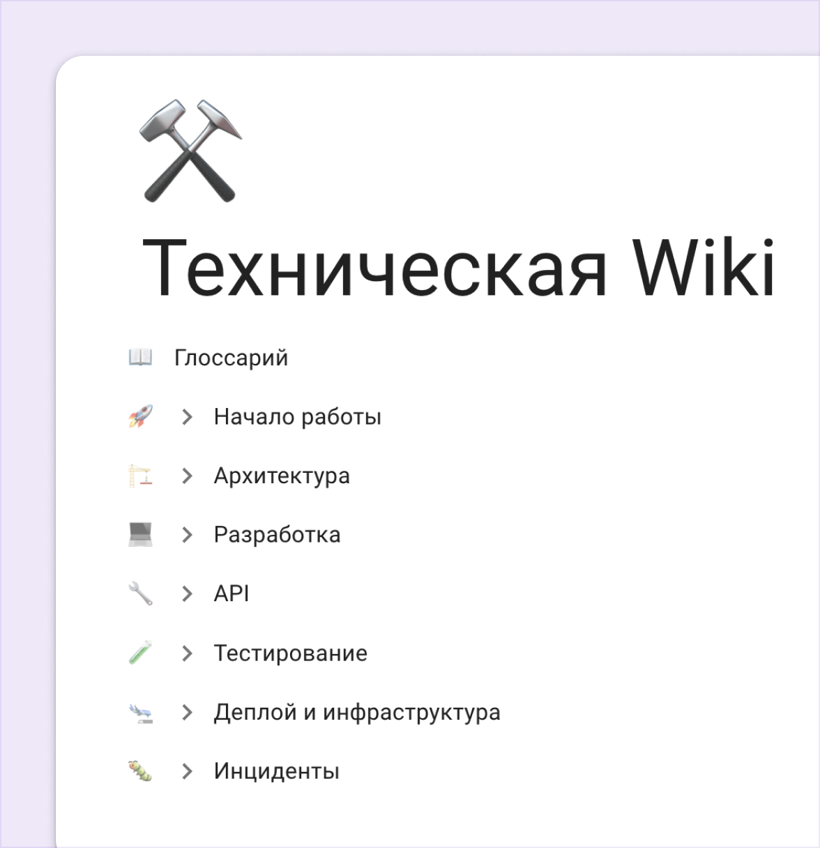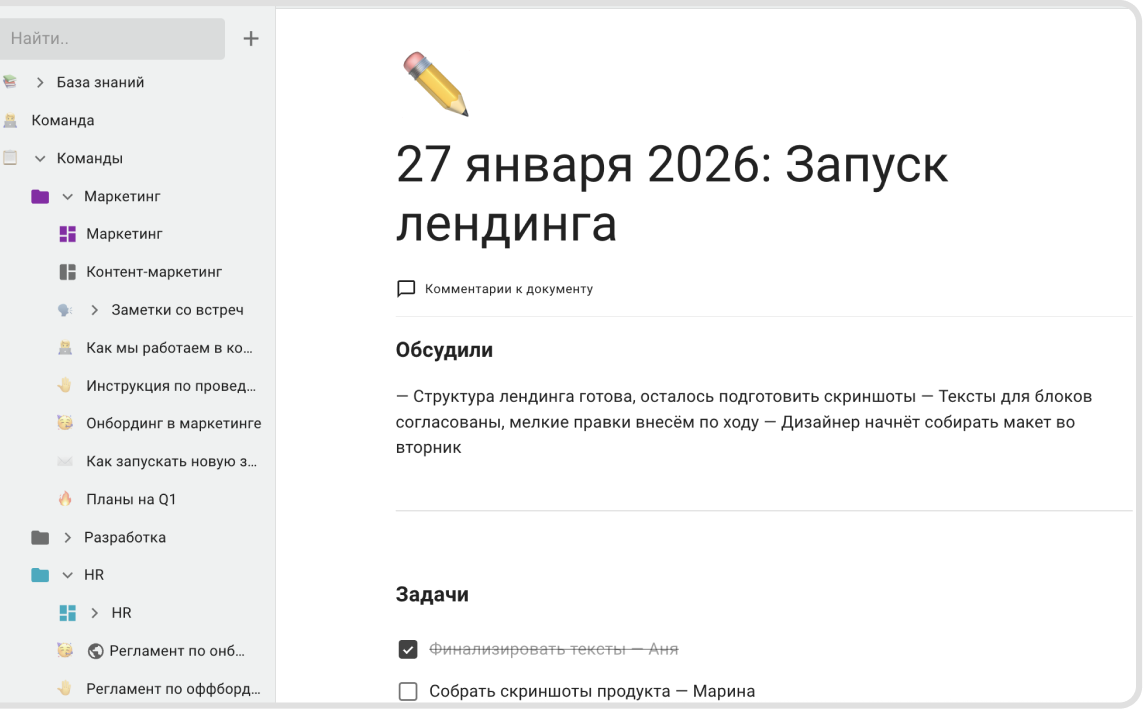 Привычные документы и структура, как в Confluence