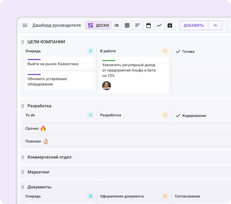 Kaiten — российская платформа для управления проектами, задачами, ресурсами и рабочими процессами команд. Платформа Kaiten доступна в облачной и локальной версиях для корпоративных клиентов с высокими требованиями к безопасности данных.