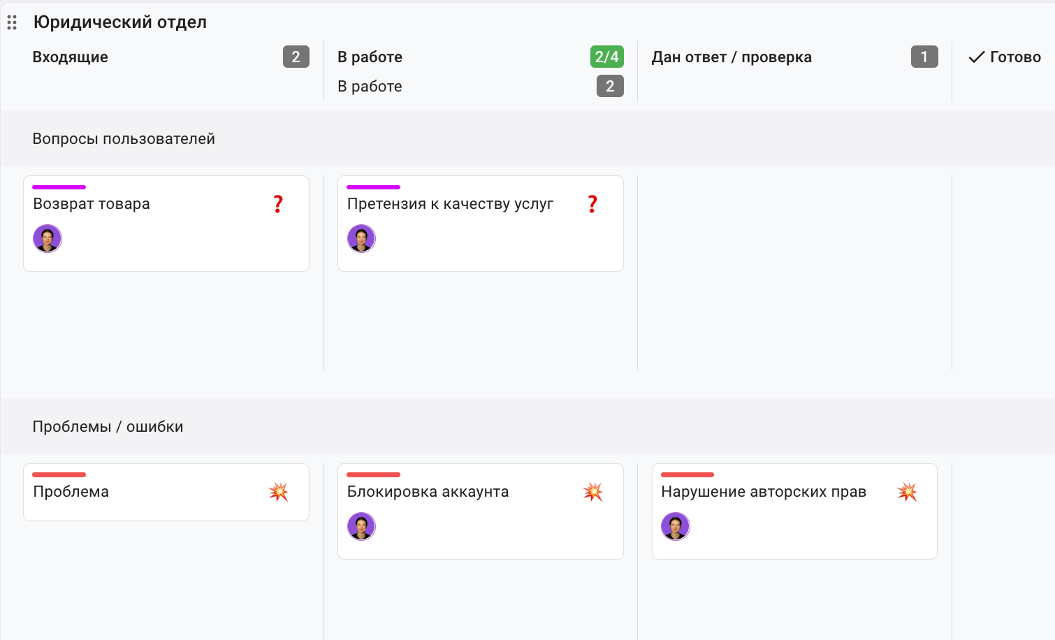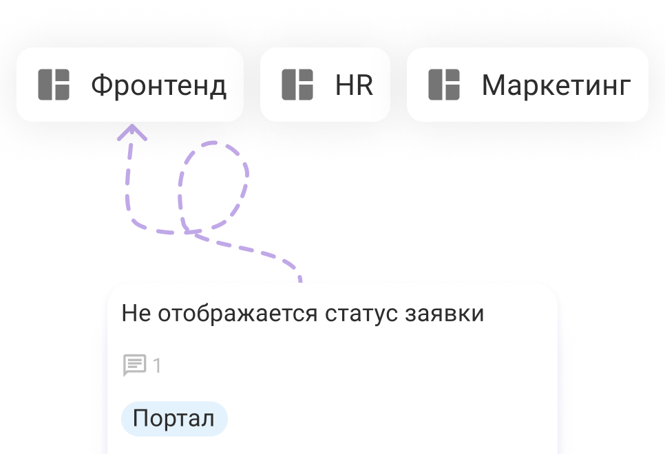 Перетаскивайте карточки на доски разработки, бухгалтерии, юристов — контекст сохраняется