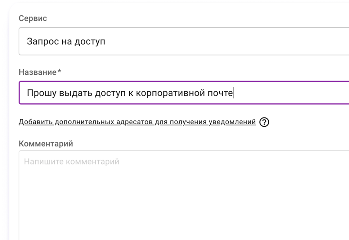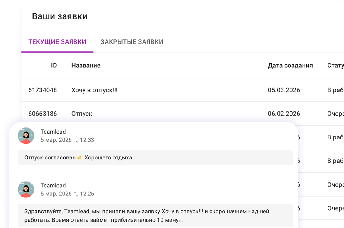 Соберите все заявки в ИТ в одном месте — настройка техники, доступы, оборудование. Никаких потерянных сообщений в чатах