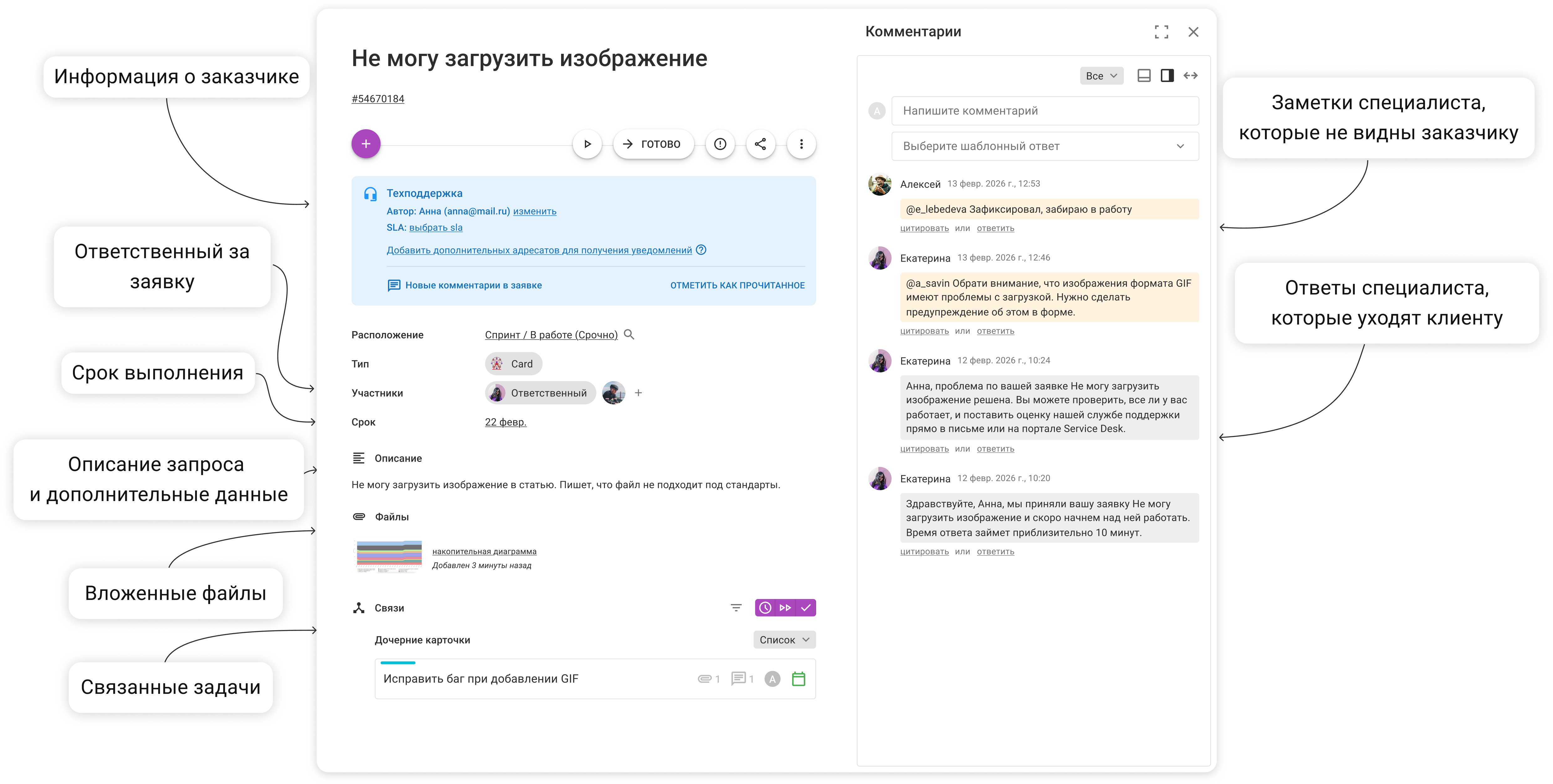 Служба поддержки — это не отдельный сервис, а встроенный модуль Кайтен для приема и обработки заявок