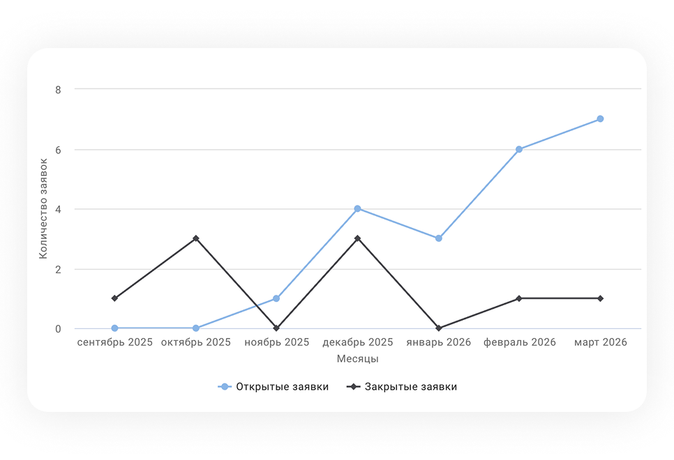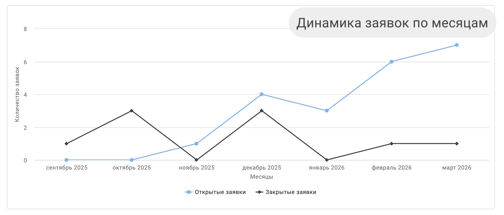 Динамика заявок по месяцам: когда обращений больше всего и справляется ли команда