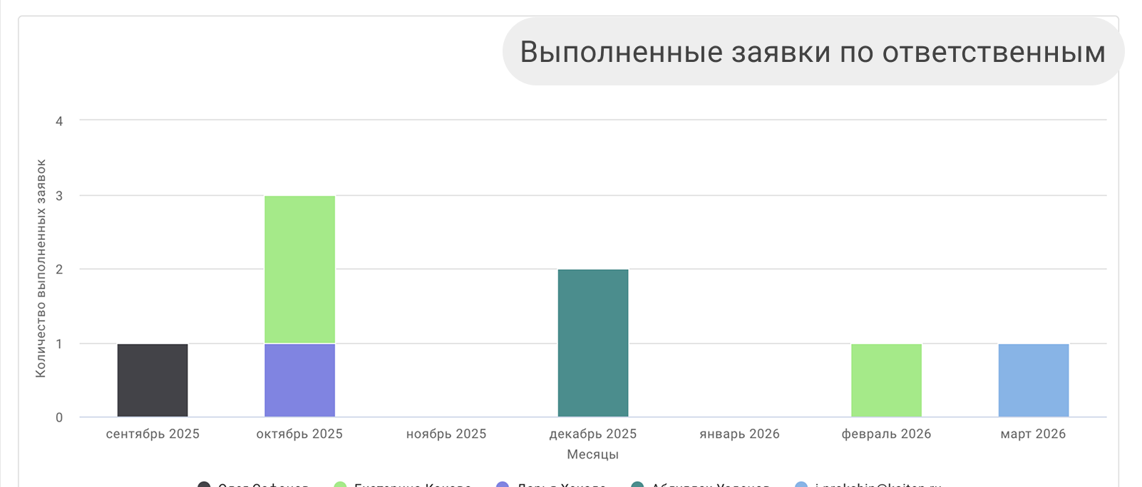 Отчет по выполненным заявкам: видно реальную нагрузку на каждого и где нужно перераспределить задачи