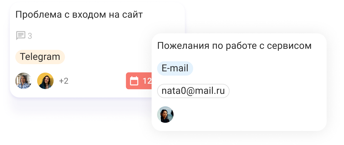 Принимайте обращения из почты, портала и мессенджеров на одной доске