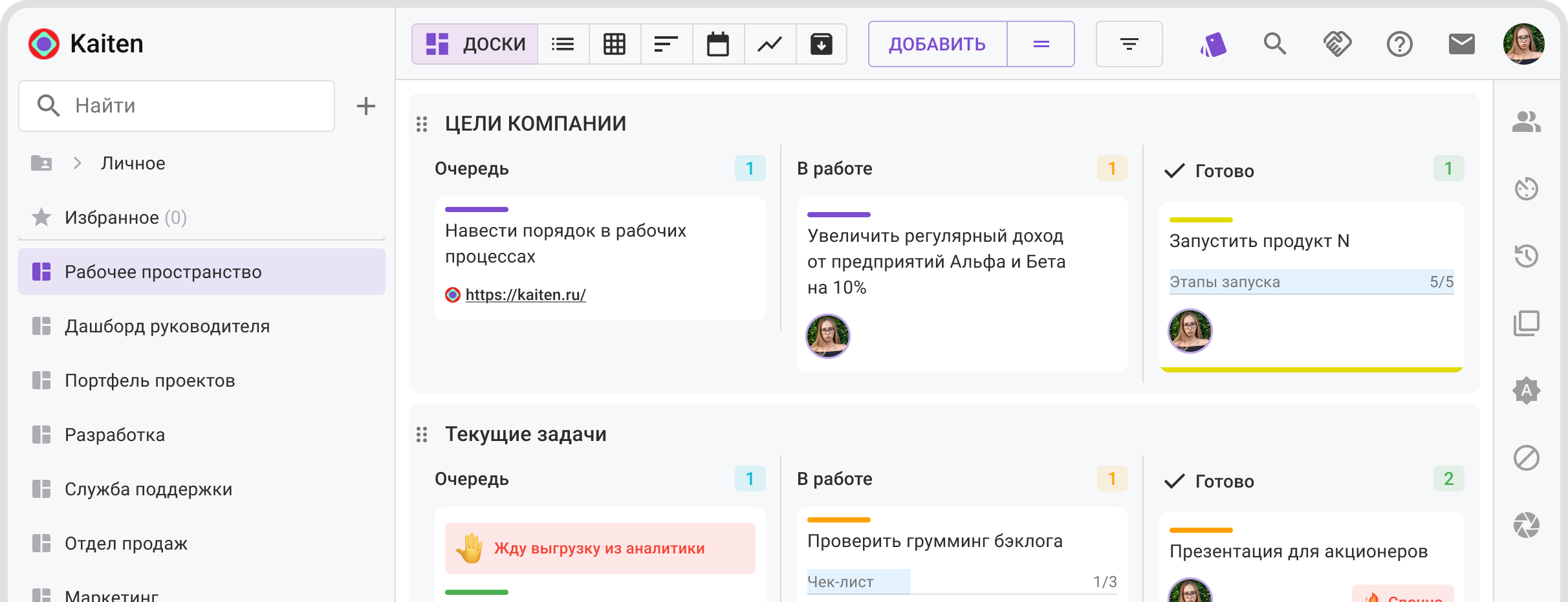 Kaiten функциональный как Jira, но без сложной настройки