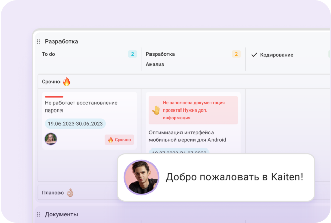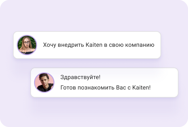 Заполните короткую форму — и с вами свяжется персональный менеджер. Он покажет Kaiten на демо и разберется, какие задачи стоят перед вашей командой.